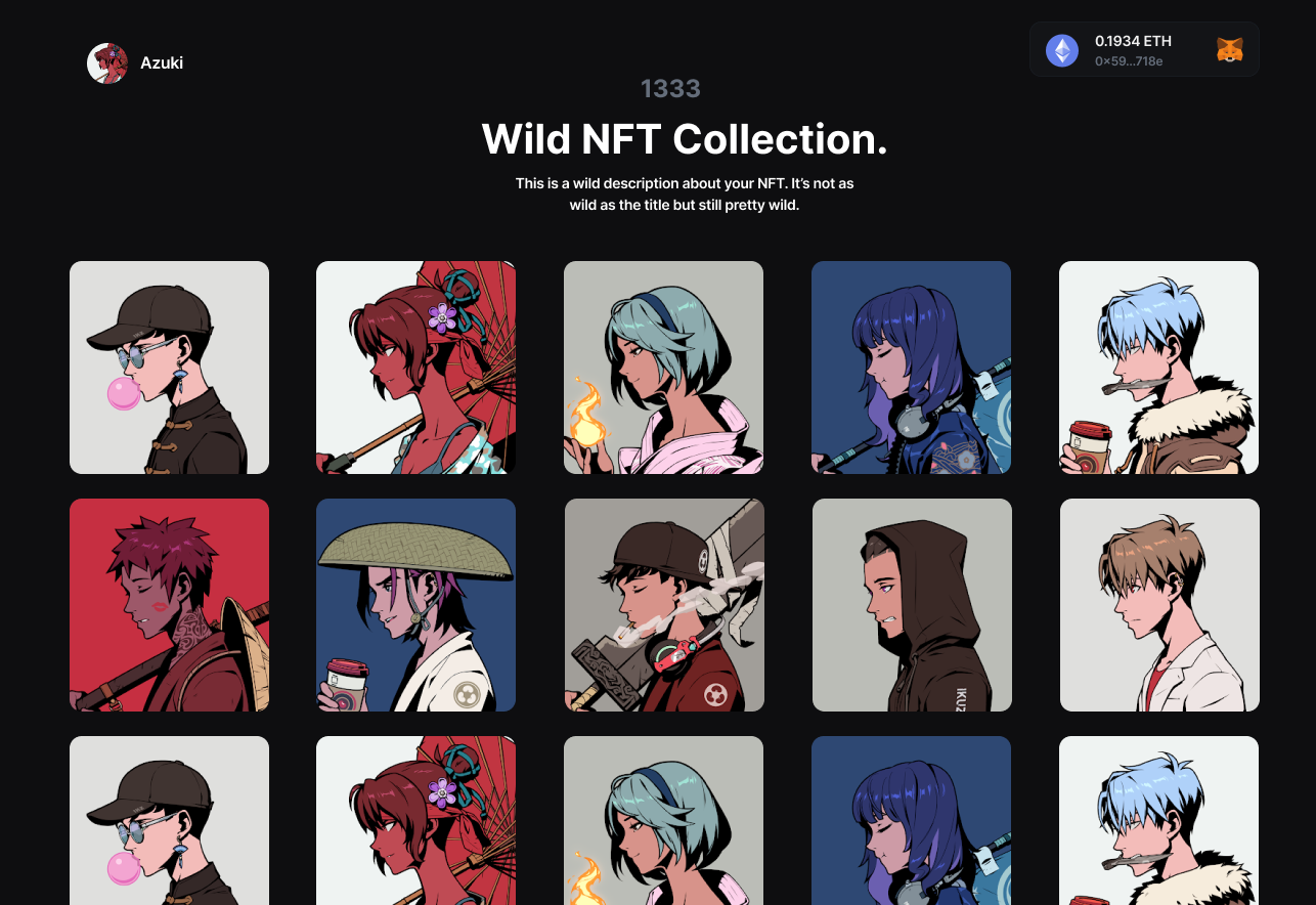 NFTコレクションを表示するwebギャラリーです。一覧ページと詳細ページがあります。